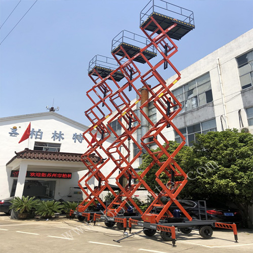 移動剪叉式升降機是用途廣泛的高空作業專用設備。可同時站3-4個人的工作平臺,500-1000kg的超大承載能力,使高空作業范圍更大,節約了大量無效勞動力。
