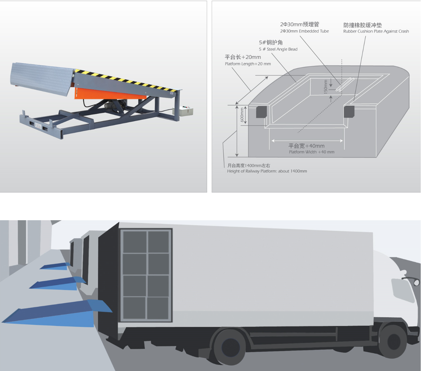 配合叉車(chē)從貨車(chē)尾部或倉(cāng)庫(kù)等大批量裝卸貨物